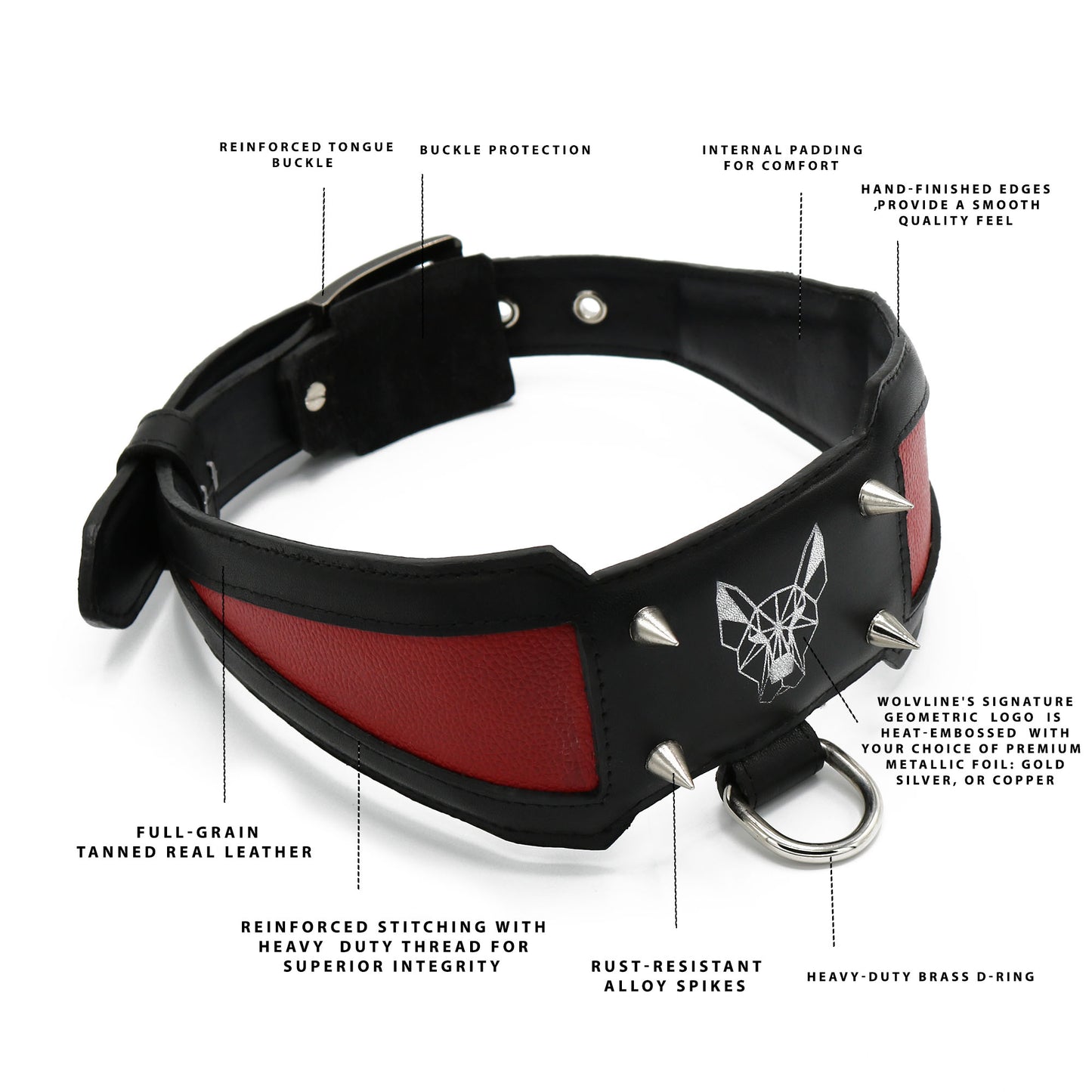 Wolvline PHANTOM STRIKE Black-Red Leather Dog Collar